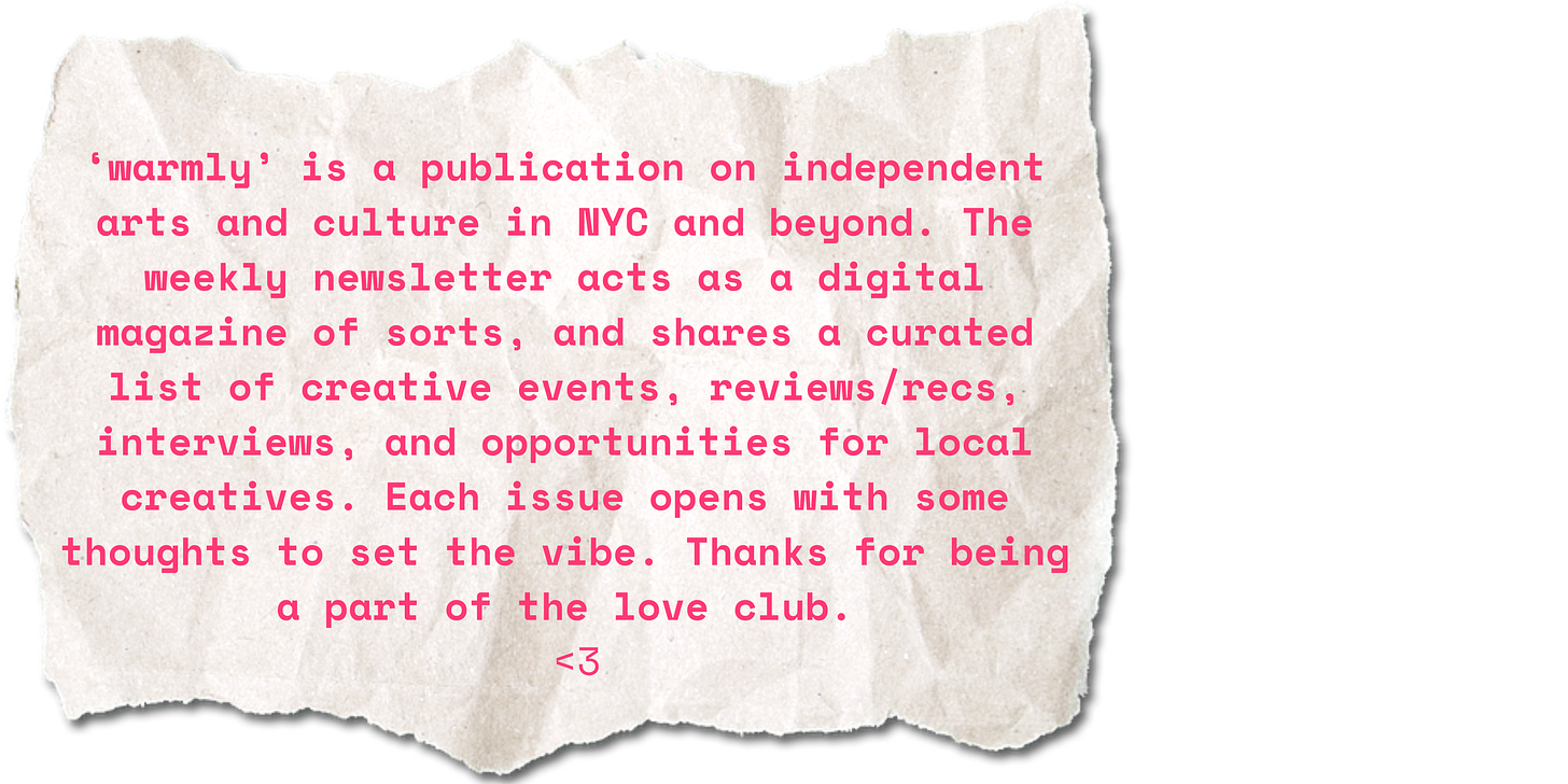 SIDE NOTE… I’m working on warmly’s annual “warm wishes” gift guide full of goods by local NYC makers, artists, and brands, AND places (small biz, markets, pop ups) to shop them. I love how community driven last year’s guide was so… Pitch your stuff! Pitch your friends’ stuff! Pitch your favorite stuff! just shoot me a DM